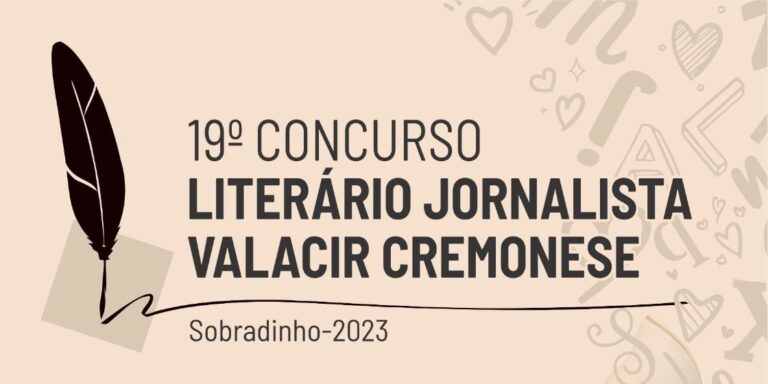 Encerra nesta sexta-feira, 29, o prazo para inscrições ao 19º Concurso literário Jornalista Valacir Cremonese, uma promoção da Secretaria de Educação, Cultura, Turismo e Desporto de Sobradinho, Casa da Cultura Amário João Lazzari e Conselho Municipal de Política Cultural. O concurso literário, que neste ano tem como tema “o Amor”, e gênero literário “livre”, deverá reunir participantes de vários lugares do Brasil. Os interessados podem participar em três categorias: Infantil, Juvenil e Adulto.