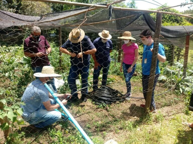 A atividade visou oportunizar aos extensionistas cujos municípios foram contemplados com os kits de irrigação a vivência e a prática da instalação desses sistemas. Entre os temas abordados constaram o posicionamento da estrutura para a instalação da caixa d’água, conferência dos materiais que compõe o kit, montagem da caixa d’água com boia automática, instalação do filtro, da rede principal até a horta e/ou pomar e das redes de derivação, cuidados na manutenção dos bicos cotejadores e do filtro de ligação.