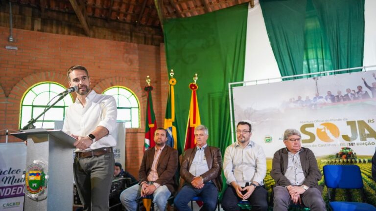 O governador Eduardo Leite participou, nesta sexta-feira, da 14ª Abertura Oficial do Plantio da Soja no Rio Grande do Sul, no município de Júlio de Castilhos. A estimativa da safra de verão 2024/25 é de 21,65 milhões de toneladas de soja, segundo dados da Emater. De acordo com esta projeção, o Estado cultivará uma área de 6,81 milhões de hectares, um aumento de 1,57% na área plantada.