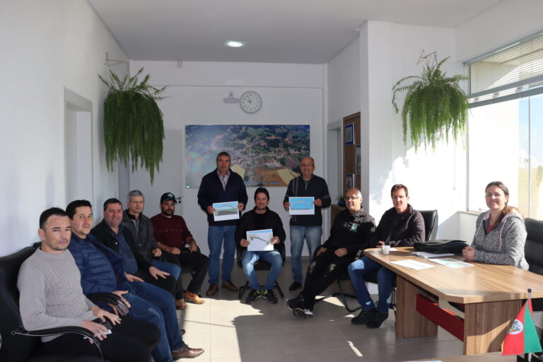 O prefeito de Lagoa Bonita, Luiz Francisco Fagundes e vice Leonir Francesquet, juntamente com secretários municipais e assessores, estiveram reunidos com o arquiteto e urbanista Jerônimo Lazzari e o responsável pelo levantamento topográfico, William de Souza, para apresentação do projeto de um pórtico do acesso ao Município.