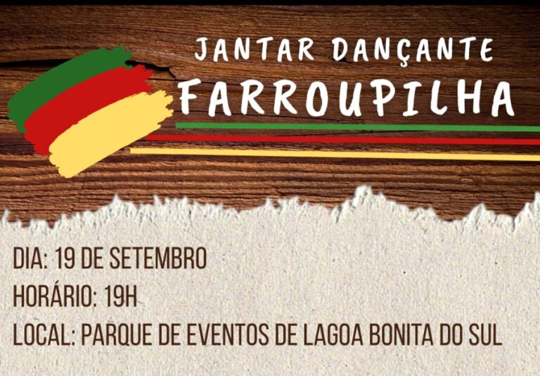 O Parque de Eventos de Lagoa Bonita do Sul recebe uma grande celebração da tradição gaúcha, nesta sexta-feira (19), a partir das 19h, com a realização do Jantar Dançante Farroupilha. O cardápio da noite contará com arroz carreteiro, cucas e saladas.
