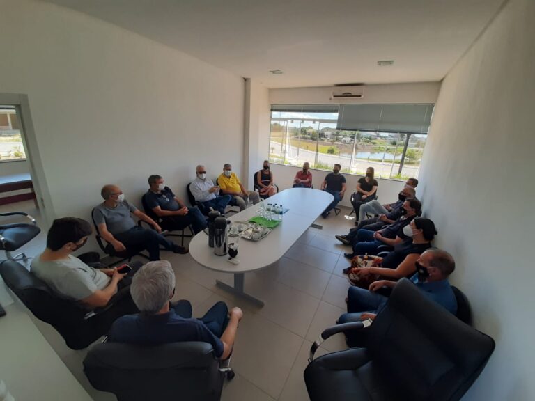 O prefeito Luiz Francisco Fagundes; seu vice, Leonir Francesquet, além de servidores, secretários municipais, e vereadores estiveram reunidos nesta terça-feira (1), no Centro Administrativo Municipal, com o deputado Estadual Adolfo Brito e o deputado Federal Pedro Westphalen.