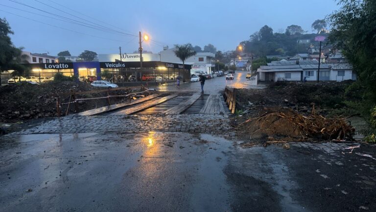 O trânsito já está liberado na chamada ponte do Treviso, no principal acesso à cidade. A travessia de madeira que foi construída no local após a enchente de maio de 2024 estava interditada preventivamente desde a manhã desta terça-feira, 17. No local, uma parte do aterro havia desmoronado. Uma equipe da prefeitura trabalhou na recuperação ao longo desta tarde e liberou o trânsito no início da noite.