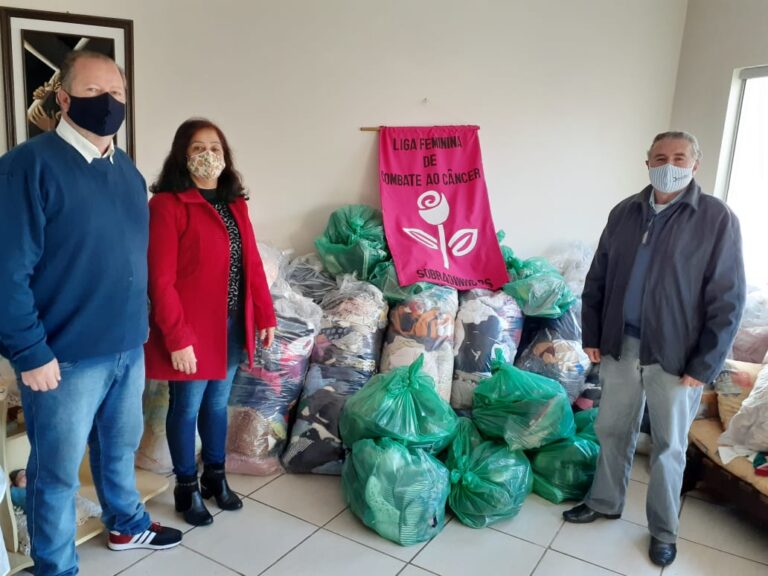 A Liga Feminina de Combate ao Câncer de Sobradinho recebeu uma doação da defesa Civil do Estado. São cobertores, roupas e calçados. O pedido havia sido encaminhado pelo vereador Miguel Vieira (PP), juntamente com a presidente da Liga, Maria Solange Viera dos Santos, para a secretária Estadual da Agricultura, Silvana Covatti, a qual formalizou a solicitação junto a Defesa Civil do Estado.
