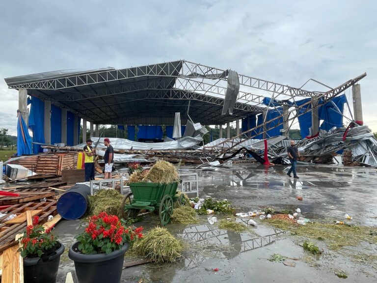 A Defesa Civil do Estado se deslocou para o município na manhã desta segunda-feira (02) para fazer o levantamento. O prefeito disse que deverá decretar situação de emergência. Conforme ele, a força de vento foi tão forte que chegou a deslocar pilares pré-moldados de concreto que sustentam a cobertura do pavilhão de eventos e arrancou e retorceu árvores do parque. Conforme a MetSul Meteorologia, não há um registro exato da velocidade do vento, porém estimou que tenha alcançado os 100 quilômetros por hora ou até ultrapassado esta marca.