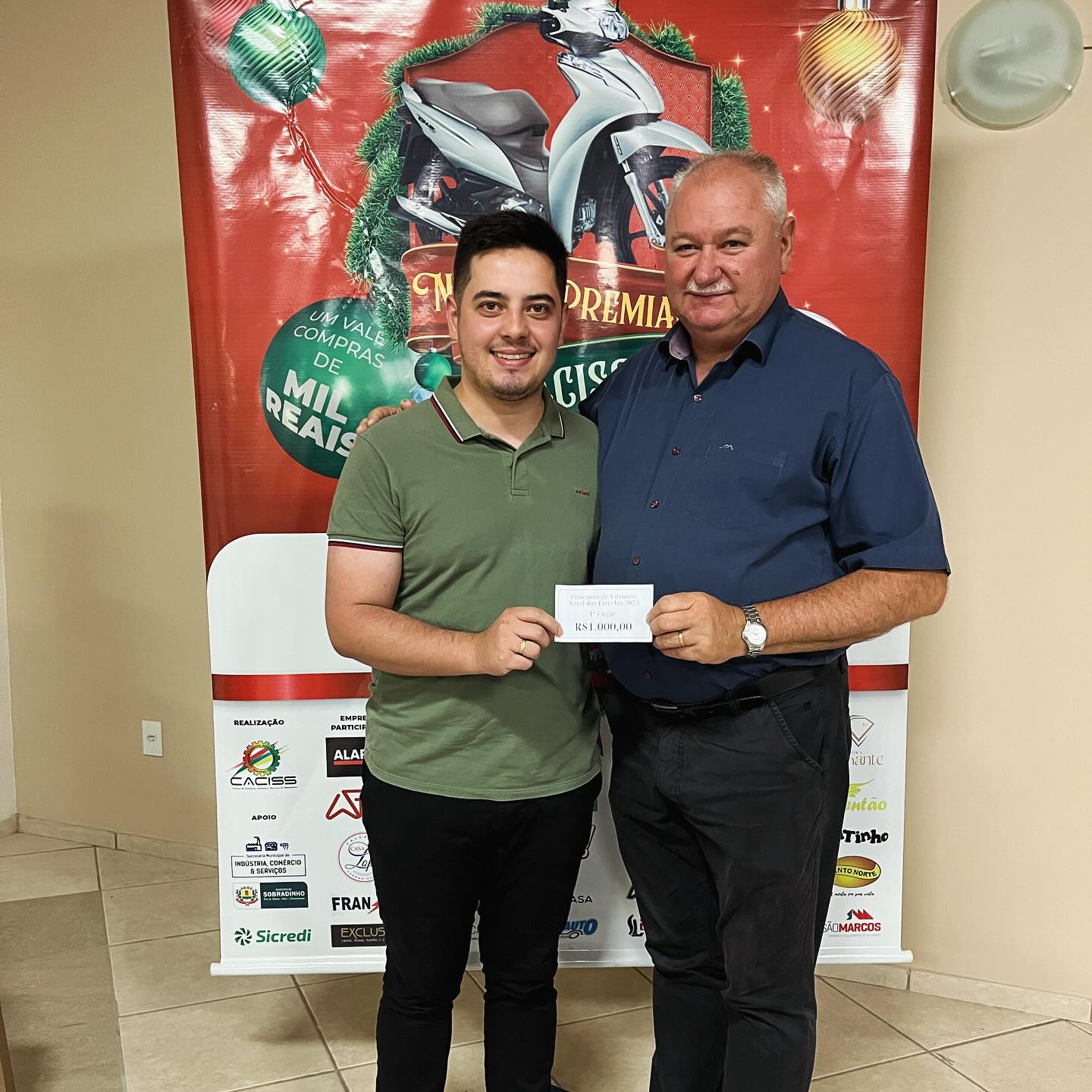 Os ganhadores dos vales-compras de R$ 500,00 foram: Edson César Wolff, Ivanir dos Santos Wiedenhoft, Ruben Klafke, Helena Roso e Enzo Giacomelli – todos de Sobradinho. Já o vale-compras de R$ 1.000,00 saiu para Adiles Francesquett, morador de Pitingal, Passa Sete. O prêmio principal, uma moto Honda Biz 0KM, foi para Gilceu Roque Quoos, residente em Linha Um A, Ibarama.