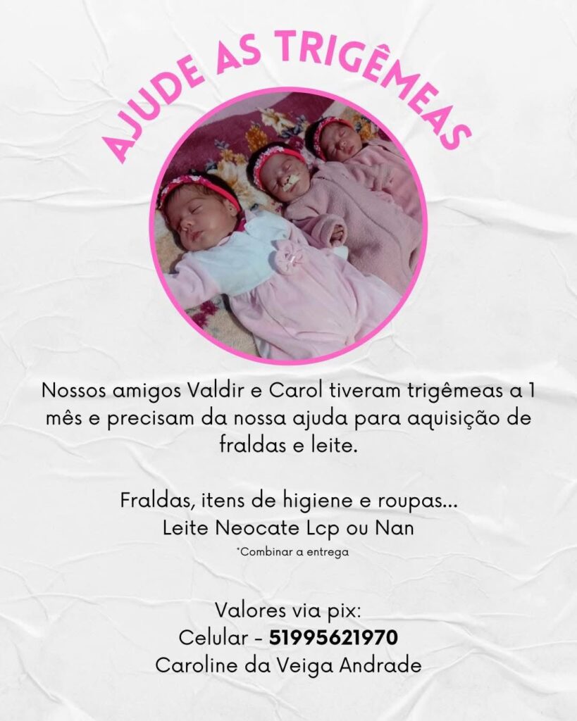 Apesar da felicidade com a chegada das trigêmeas, a família enfrenta dificuldades financeiras para arcar com as despesas básicas das recém-nascidas. Somente com fraldas, o gasto diário chega a cerca de R$ 30,00. Diante disso, amigos e familiares estão mobilizando uma campanha solidária para arrecadar fraldas, lenços umedecidos e fórmula especial para recém-nascidos.