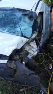 Um acidente ocorreu na manhã desta quinta-feira (08), na ERS-400 em Granja do Silêncio. O condutor de uma Van de carga – Renault Master com placas de Candelária, perdeu o controle do veículo durante uma ultrapassagem, saiu da pista e colidiu contra uma árvore. Com o impacto, ele ficou preso nas ferragens. O Corpo de Bombeiros Voluntários de Sobradinho foi acionado, e após meia hora de trabalho com desencarcerador, a vítima foi removida das ferragens. O SAMU de Candelária chegou no local do acidente e encaminhou o motorista em estado estável para o Hospital de Candelária, com fraturas na perna esquerda e escoriações.