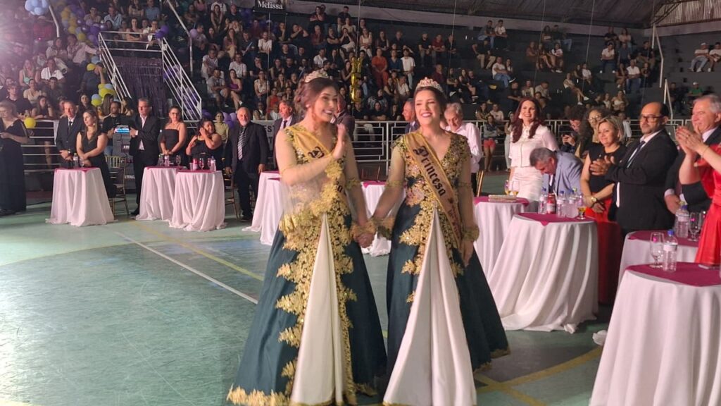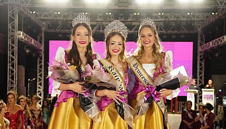 As eleitas receberam faixas e coroas das princesas Eduarda Lopes Pereira e Michele Sabrina Kittel, homenageadas pelo trabalho realizado ao longo de seis anos de reinado.