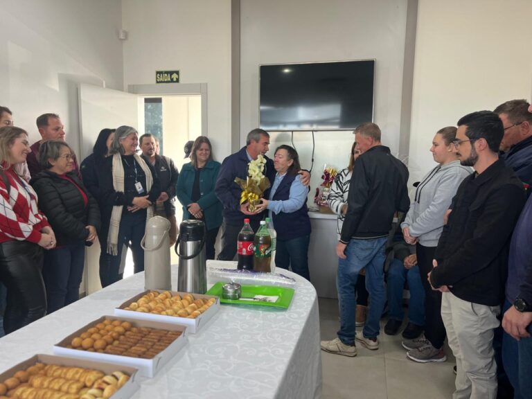A despedida foi marcada por uma homenagem organizada pela equipe da Emater de Lagoa Bonita e de outros escritórios da região, com a presença de servidores, secretários municipais, do prefeito Luizinho Fagundes e do vice-prefeito Sidinei Bach.