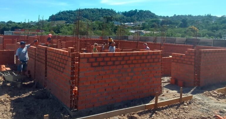 O prefeito em exercício, Vanderlei Hermes, acompanhado do gerente municipal de convênios, Flamir Schneider, e da engenheira Patrícia Etges, estiveram visitando o canteiro de obras de edificação da nova Unidade Básica de Saúde, no Centro. Na oportunidade, eles verificaram o progresso da construção, que já se encontra em 18% – conforme levantamento da equipe técnica. O novo prédio está sendo construído na Rua Tancredo Neves, que recentemente recebeu pavimentação.