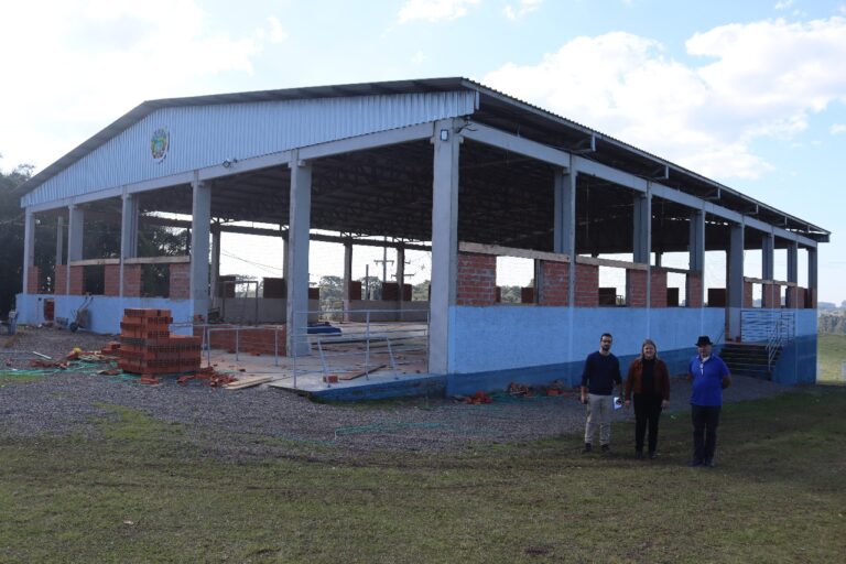 A Administração Municipal está promovendo obras de fechamento lateral da quadra coberta, no Parque de Eventos. Atualmente, os trabalhos estão na fase de execução das alvenarias e fabricação de portas e janelas. O prefeito Luiz Francisco Fagundes, juntamente com a secretária de Educação, Cultura e Desporto, Simone Bach Dal Ri e o engenheiro, Matheus Almeida, esteve acompanhando os trabalhos. A próxima etapa prevê o fechamento da parte superior das paredes com estrutura metálica e aluzinco.