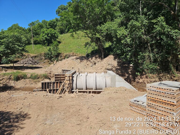 A Administração Municipal d Sobradinho está perto de concluir importantes obras de infraestrutura para melhorar a mobilidade e a segurança em pontos estratégicos da cidade e interior. O segundo bueiro na Sanga Funda e a galeria na Rua Armindo Muller, no Bairro Rio Branco, já estão finalizados, faltando apenas a construção de aterros para a liberação do trânsito, prevista para ocorrer até a próxima semana.