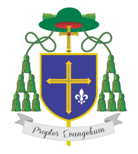 Brasão Episcopal: O chapéu da dignidade episcopal tem doze borlas verdes e é símbolo de, Cristo cabeça da Igreja e dos doze apóstolos, a cuja missão o bispo encontra-se intimamente associado. A cruz pastoral dourada indica que o ministério do bispo existe em referência ao ministério pastoral de Jesus e em continuidade com o mesmo. O rubi no centro da cruz pastoral lembra o fogo do Espírito Santo, bem como o sangue dos mártires e de Jesus Cristo, o cordeiro imolado (Jo 1,29.36; Ap 5,6).