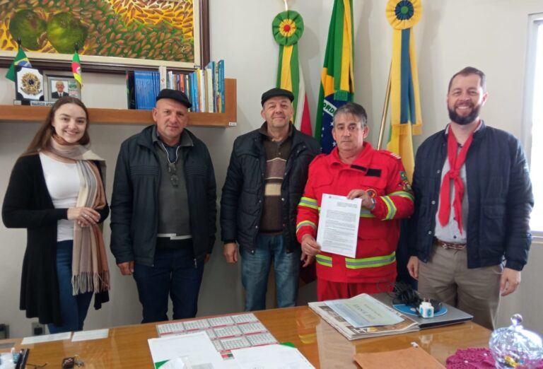 O prefeito Mauricio Ruoso, o vice-prefeito e atual secretário de Finanças, Gerson Luis Lopes, a secretária de Administração, Fabiana Lopes e o assessor jurídico, Rogerio Barbieri Carniel, receberam na manhã desta sexta-feira, 16, o presidente da Associação Civil Corpo de Bombeiros Voluntários de Sobradinho, Marci da Silveira Moura. Na oportunidade, assinaram um Termo de Fomento, onde o município de Passa Sete repassará para a entidade, ainda em 2022, um recurso de R$ 10.000,00.