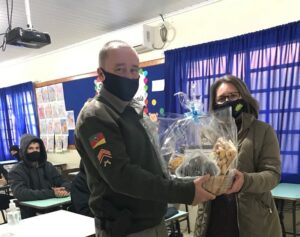 No final do evento, o Sargento Artêmio Drachler foi agraciado pela direção da escola com uma cesta de produtos coloniais.
