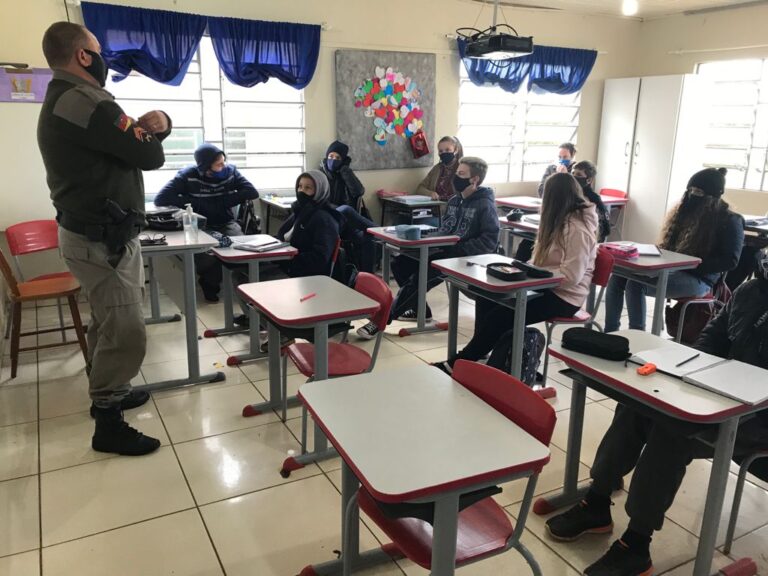Na oportunidade, o 2º Sargento Artêmio Paulo Drachler dialogou com os alunos do 5º ao 9º ano sobre a evolução da escola no que se refere à logística, contextualizando a história do estabelecimento, também discutido sobre disciplina, valores familiares, condutas de segurança no transporte escolar, bem como outros fatores externos ou internos que prejudicam o funcionamento e a tranquilidade necessária ao bom desenvolvimento no ambiente escolar.