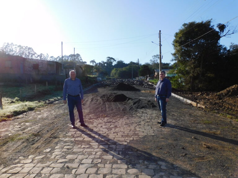 O prefeito de Sobradinho, Armando Mayerhofer, e o secretário de Finanças e Planejamento, Nilo Wietzke, vistoriaram as obras de pavimentação da Rua Ricardo Pohlmann, no Bairro Baixada. No local, estão sendo pavimentados dois trechos: um ao lado da EMEI Maria Vitória Pohllmann totalizando 530m², e outro saindo em frente ao ginásio do Bairro Baixada até a Rua João Centa totalizando 870m² de pavimentação.