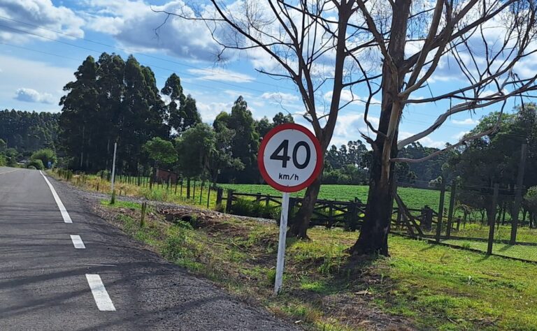 As placas de sinalização instaladas no acesso ao município de Lagoa Bonita do Sul geraram dúvidas entre os motoristas. O serviço foi executado por uma empresa contratada pelo DAER. Entre as dúvidas está o limite de velocidade.