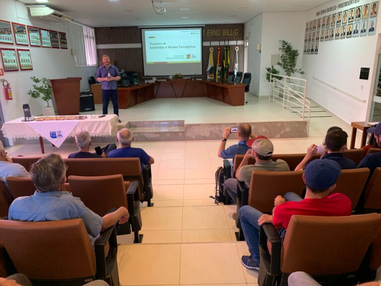 O evento teve início com a assinatura oficial do contrato do Programa de Sementes Forrageiras pela Associação dos Produtores de Leite de Estrela Velha (Apleve), marcando mais um passo no apoio à produção leiteira local. Em seguida, ocorreu uma reunião técnica e a apresentação do Programa de Sementes e Mudas Forrageiras, iniciativa do Governo do Estado, coordenada pela SDR. A explanação foi conduzida pelo engenheiro agrônomo Jonas Wesz, chefe da divisão de Sistemas Produtivos da Secretaria de Desenvolvimento Rural do Rio Grande do Sul, que detalhou os objetivos e os benefícios do programa para os produtores.
