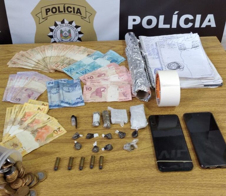 Policiais Civis de Arroio do Tigre, com apoio de agentes de Sobradinho, prenderam na manhã desta quinta-feira, 03, um casal por tráfico de drogas no Bairro São Francisco. O homem de 42 anos e a mulher de 31 foram flagrados com drogas embaladas para comercialização, dinheiro, anotações e munições.