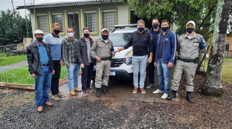 Em Lagoa Bonita, participaram da entrega da viatura o prefeito Luiz Francisco Fagundes, o secretário Cassio Lazzari e o Comandante da Brigada, Sargento Vicente Unfer.