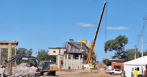 A elevação da estrutura metálica da Ponte do Fandango foi concluída nessa quinta-feira (26), após cerca de duas horas de operação às margens do Rio Jacuí. A ponte foi alteada em 3,30 metros, superando os 3,14 metros previstos em projeto, com uso de 12 macacos hidráulicos e ampla margem de segurança. Com a conclusão do içamento, a obra entra em nova fase, que inclui o travamento definitivo da estrutura, reforço dos pilares e avanço na construção dos viadutos de acesso.