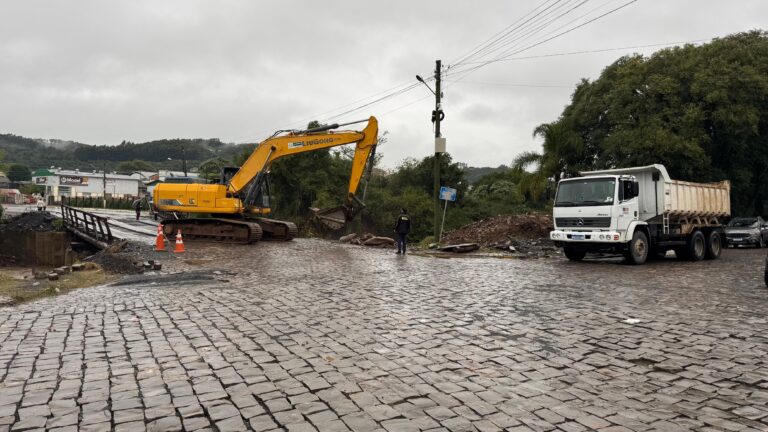 A Secretaria de Obras de Sobradinho segue trabalhando na ponte que liga o Centro à Avenida Euclides Bento Pereira. Conforme o secretário de Obras, Paulo Dalmolin, parte da cabeceira ruiu com a força das águas.