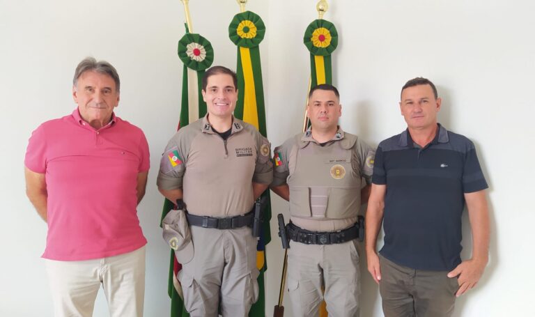 O prefeito Valmor Mattana, e o vice-prefeito, Celio Turcatto, receberam a visita do Capitão Charles Moraes Sonnenstrahl Filho, comandante da Brigada Militar de Sobradinho, e do Sargento Márcio Pires da Costa, da Brigada Militar de Ibarama.