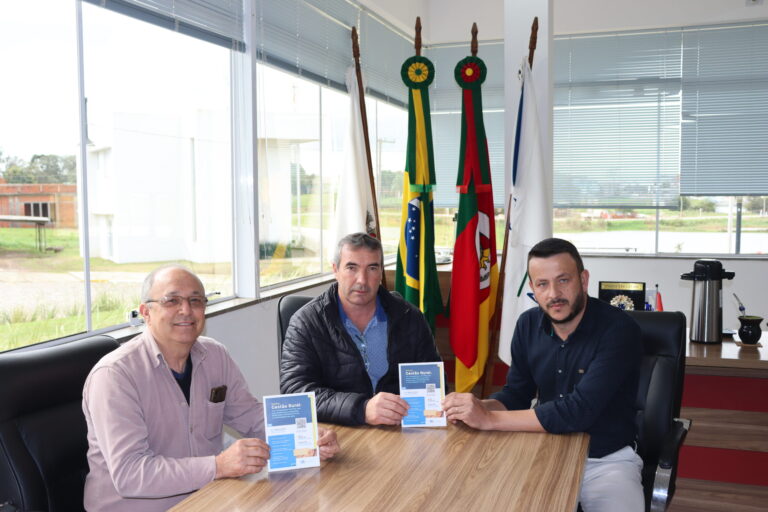O prefeito de Lagoa Bonita, Luiz Francisco Fagundes, e o vice Leonir Francesquet, estiveram reunidos com o gerente regional de Produção do Estado do Rio Grande do Sul da CTA, Neron Pauleski.