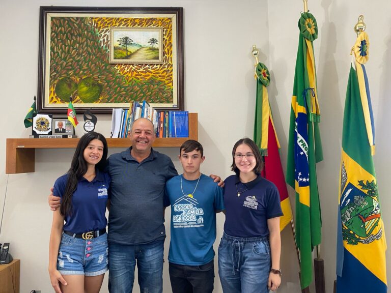 O prefeito de Passa Sete Mauricio Ruoso, recebeu os alunos Cailaine Luzia Lopes de Souza, Guilherme de Vargas e Anna Laura Morsch, da Escola Família Agrícola de Vale do Sol (EFASOL). Eles desenvolvem um projeto sobre políticas públicas.