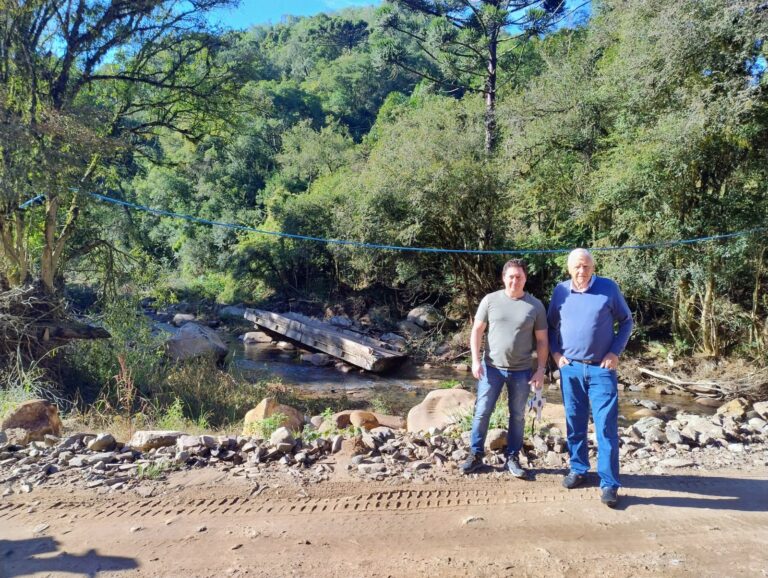 O prefeito de Segredo Claudio Trevisan, acompanhado do engenheiro civil Leônidas Lazzari Junior, visitou diversas localidades do município com o objetivo de realizar medições técnicas para a elaboração de um projeto de recuperação de pontes danificadas pelas enchentes de maio de 2024.