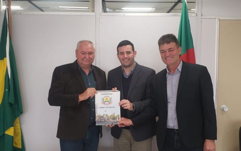 O prefeito de Sobradinho, Armando Mayerhofer, e o assessor do deputado federal Maurício Dziedricki, Celso Kramer, participaram de audiência, em Porto Alegre, com o secretário estadual do Turismo, Raphael Ayub. Na oportunidade, foi debatida a liberação de recursos para a construção de um mirante no Bairro Medianeira no valor de R$ 599.000,00.