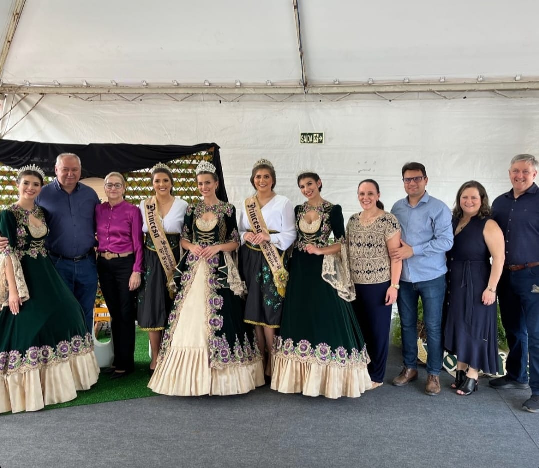 O prefeito de Sobradinho, Armando Mayerhofer; a primeira Dama, Vani Mayerhofer; o vice-prefeito Ivan Trevisan; a vice primeira Dama Maxcemira Trevisan, e as soberanas do município, rainha Francesca Kluge Puntel e princesas Eduarda Lopes e Michele Sabrina Kittel participaram de eventos nestes últimos dias na região. No sábado (23) a comitiva participou da Volksfest, em Agudo, e no domingo (24), da ExpoLagoão.