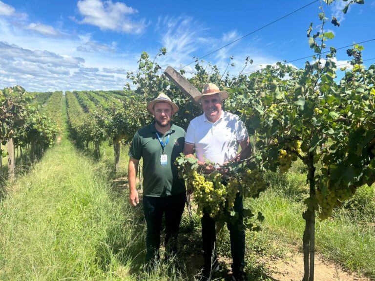A comitiva visitou o Sítio Mendonça, referência na produção de uvas, e a Fazenda Pecanera Brasil, especializada no cultivo de nozes-pecan, cultura que vem se destacando pelo potencial econômico e adaptação ao clima da região.