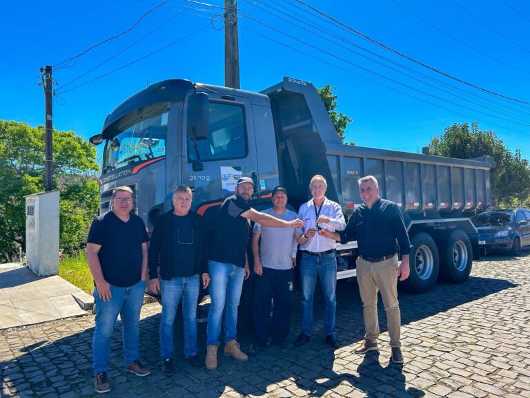 A prefeitura recebeu um caminhão caçamba 6×4, zero quilômetro, no valor de R$ 685 mil. O veículo será incorporado à frota da Secretaria de Obras e Viação, com o objetivo de fortalecer os serviços de infraestrutura urbana e rural. A entrega contou com a presença do prefeito Vanderlei Hermes, do secretário da Fazenda, Edesio Jank, do secretário de Obras e Viação, Fabiano Konrad, do servidor Darlan Raminelli e do gerente de Convênios e Contratos, Flamir Schneider.