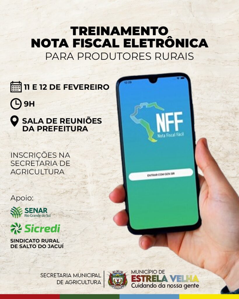 O treinamento dá continuidade às ações iniciadas em 2025 para preparar o setor rural para essa mudança. Durante os encontros, os participantes aprenderão a utilizar o aplicativo Nota Fiscal Fácil (NFF), poderão esclarecer dúvidas sobre a obrigatoriedade da NFP-e e receber orientações para emitir notas com mais segurança e autonomia. A iniciativa conta com o apoio do Senar/RS, Sicredi e do Sindicato Rural de Salto do Jacuí.
