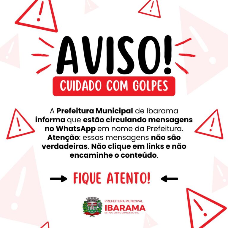 A Prefeitura de Ibarama emitiu um alerta à comunidade nesta semana sobre a circulação de mensagens falsas no WhatsApp, que estariam sendo enviadas em nome da administração municipal. Segundo a nota divulgada, os conteúdos não são oficiais e podem conter links suspeitos, utilizados com o objetivo de aplicar golpes.