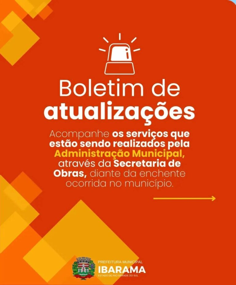 Conforme ele, os trabalhos estão sendo feitos de forma escalonada, e na medida do possível, a equipe de Obras vai atender todas as comunidades, visando a reconstrução do município de Ibarama.