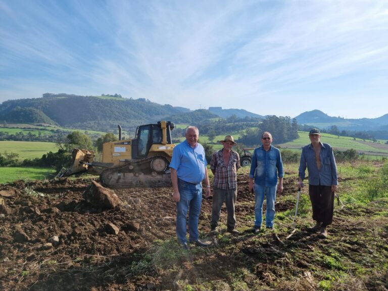 O prefeito de Sobradinho, Armando Mayerhofer, e o secretário de Agricultura e Meio Ambiente, Jair Cremonese, estiveram acompanhando os serviços feitos em Linha Carijinho, com o trator da prefeitura. Na oportunidade, visitaram a propriedade de Ademar Zanella onde o trator de esteira está fazendo a recuperação e melhorias da lavoura, destocagem e terraplenagem.
