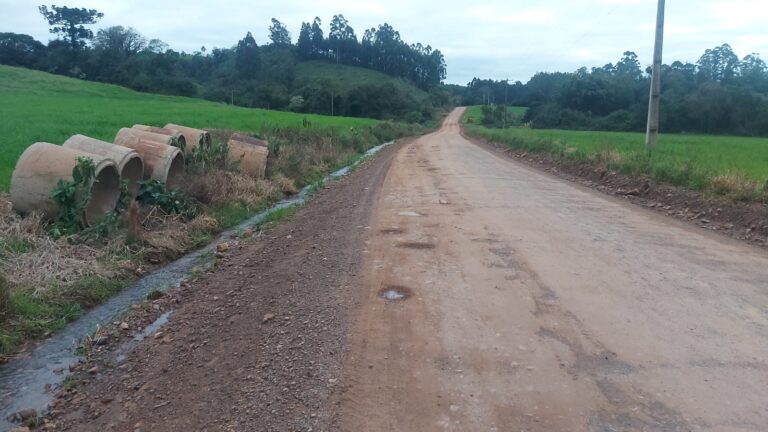 O que ainda permanece no local, são antigos canos que foram depositados há quase 10 anos para construção de bueiros, que podem ser vistos às margens da estrada entre Linha Umbú e Serrinha do Pinhal.