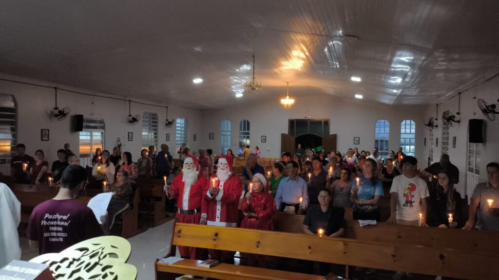 Na terça-feira (23), a Paróquia São João Batista de Lagoão promoveu a primeira Vigília das Luzes, uma procissão com velas que percorreu a cidade, entoando cânticos natalinos e abençoando residências, comércios e espaços públicos.