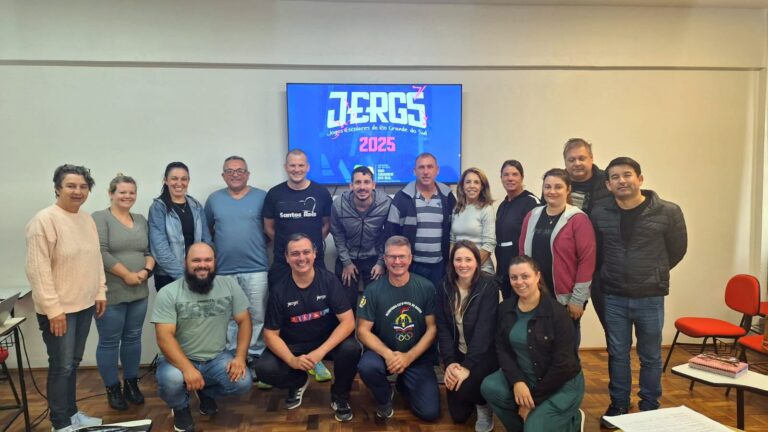 A reunião teve como objetivo discutir o esporte no município e as fases regionais e estaduais dos Jogos Escolares do Rio Grande do Sul (JERGS).