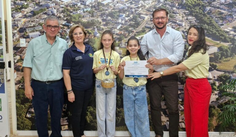 As alunas do 4º ano da Escola Estadual de Ensino Fundamental Lindolfo Silva de Sobradinho, Antônia Wietzke Freese e Valentina Sartorio, acompanhadas da professora Reginara de Oliveira, participaram da cerimônia de premiação da Feira de Ciências da Unisc, em Santa Cruz do Sul. Elas receberam menção honrosa pelo trabalho “Reciclando Papel: Plante Essa Ideia”.