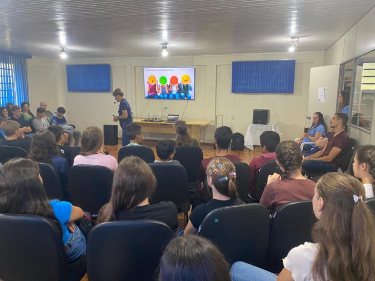 O primeiro encontro reuniu alunos do 7º, 8º e 9º anos das escolas Germínio Rubert, Pedro Silveira e Waldemar Wolf, abordando o tema sexualidade e puberdade de forma educativa e orientativa.