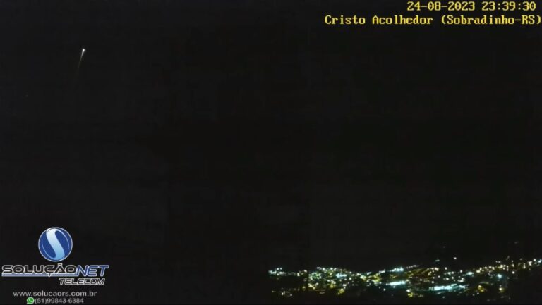Como o rastro luminoso ficou quase um minuto no céu do Rio Grande do Sul, muitas pessoas em várias cidades conseguiram fazer imagens com seus celulares. Em Sobradinho, o rastro no céu foi registrado pela câmera de monitoramento instalada pela empresa Solução Net Telecom, no monumento do Cristo Acolhedor de Sobradinho. A imagem registra a passagem a partir das 23h:38, no sentido Oeste – Leste. Esse foi um dos assuntos mais discutidos nas redes sociais. Confira as imagens abaixo:
