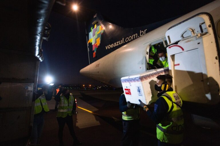 A remessa total, com 63.600 doses, será destinada à aplicação da segunda dose (D2) em pessoas que já estão com o prazo de aplicação vencido. O avião ATR-72 com a caixas térmicas contendo Coronavac pousou na capital pouco depois das 6h, vindo do aeroporto de Guarulhos (SP).