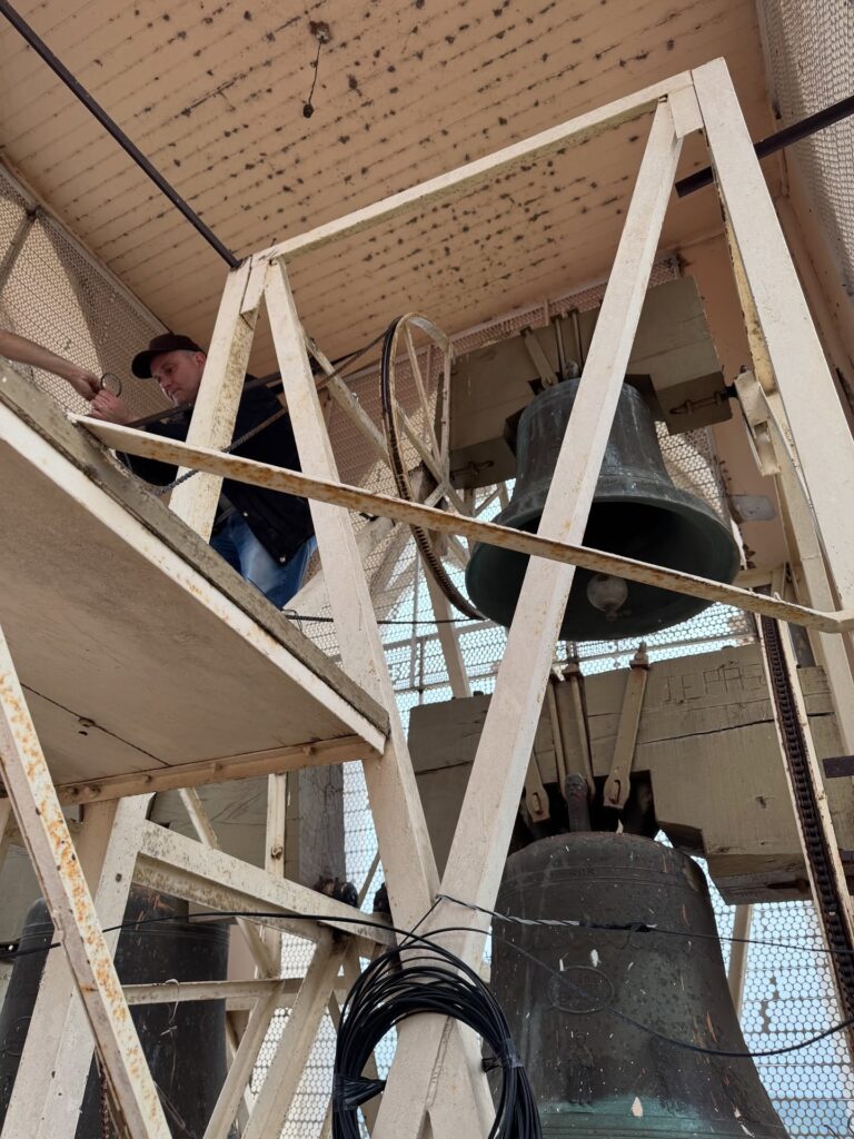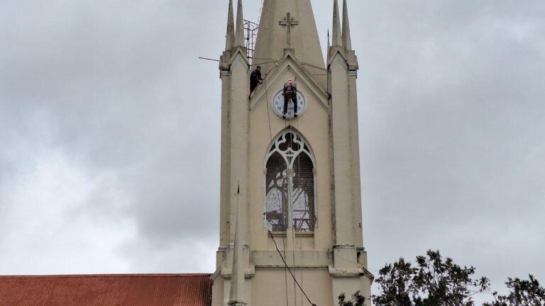 Teve início nesta terça-feira (30) o trabalho de restauro dos sinos da Igreja Matriz Nossa Senhora dos Navegantes de Sobradinho. Técnicos e engenheiro da empresa Beatek de Porto Alegre executam as melhorias. Segundo o engenheiro e sócio proprietário da empresa, Marco Kaiser, os sinos estão em boas condições, foram feitos em bronze e não apresentam rachaduras.