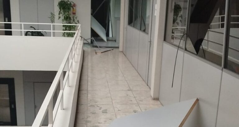 Conforme o vice-prefeito Nilo Wietzke, a sala do setor de engenharia, no terceiro piso do prédio, foi a mais atingida pelo vento, que quebrou vidros e retorceu a parede interna que divide os setores.