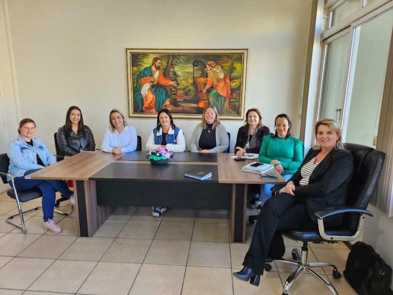 A secretária da Educação de Sobradinho, Cleura Minetto, e a Coordenadora Pedagógica Marlete Zuchetto estiveram reunidas com as diretoras das Escolas Municipais de Educação Infantil do Município (Emeis). Na oportunidade, foram tratados diversos assuntos referente ao andamento das adaptações das crianças neste ano e as vagas nas escolas.